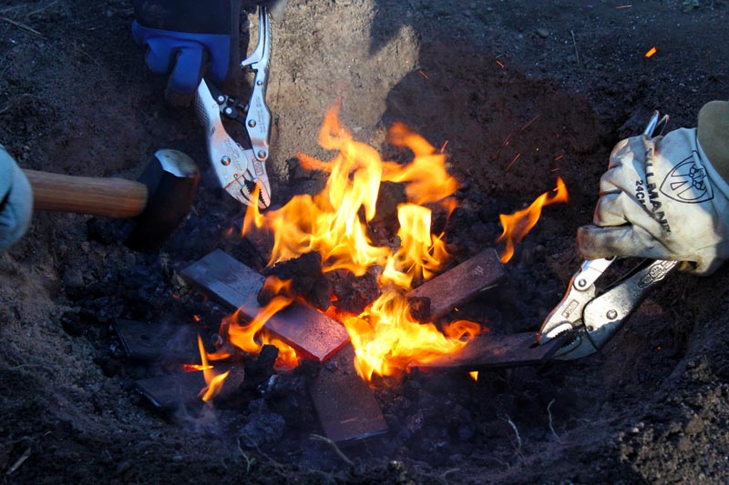 Because we were working outside, all of our materials, including the steel beam we were using as an anvil,