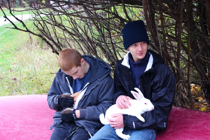 Our Fall theme is survival cooking, so we neede to prep an animal. Rabbits (destined for butchering)